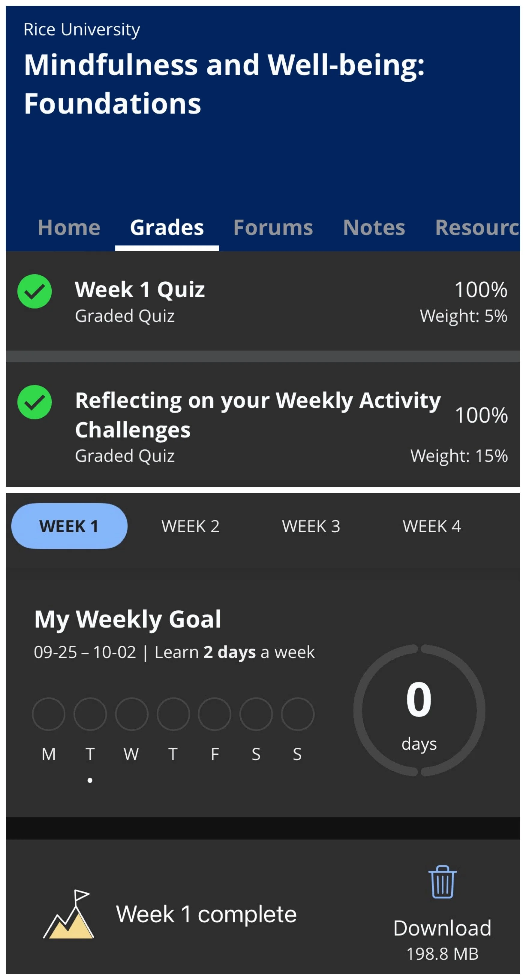 This week I started a Coursera workshop on the Foundations of Mindfulness and Well Being, as taught by Dr Elizabeth Slator of Rice University. This blog will track my progression in the class and serve as a repository of my written reflections and assignments in the course.