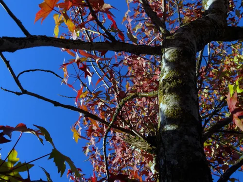 I found the colours of the fall are always wonderfully enhanced by the strong light at sunset, as captured in this photograph of a tree.